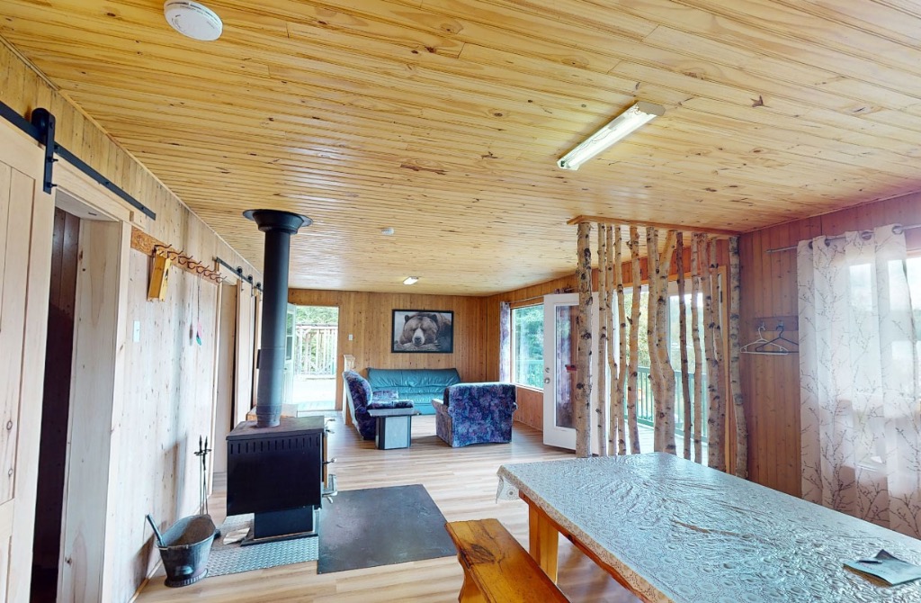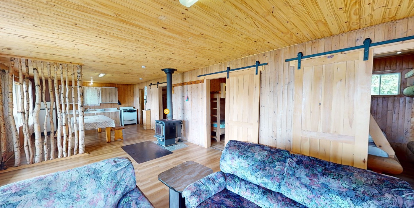 Unlike the other chalets, the chalet number 10 is equipped with propane for the stove, 2 refrigerators and water heaters and the light is produced by solar energy. There is also a full bathroom with a shower and a wood stove in the living room. The fully equipped kitchen includes dishes, pans and all necessary equipment.